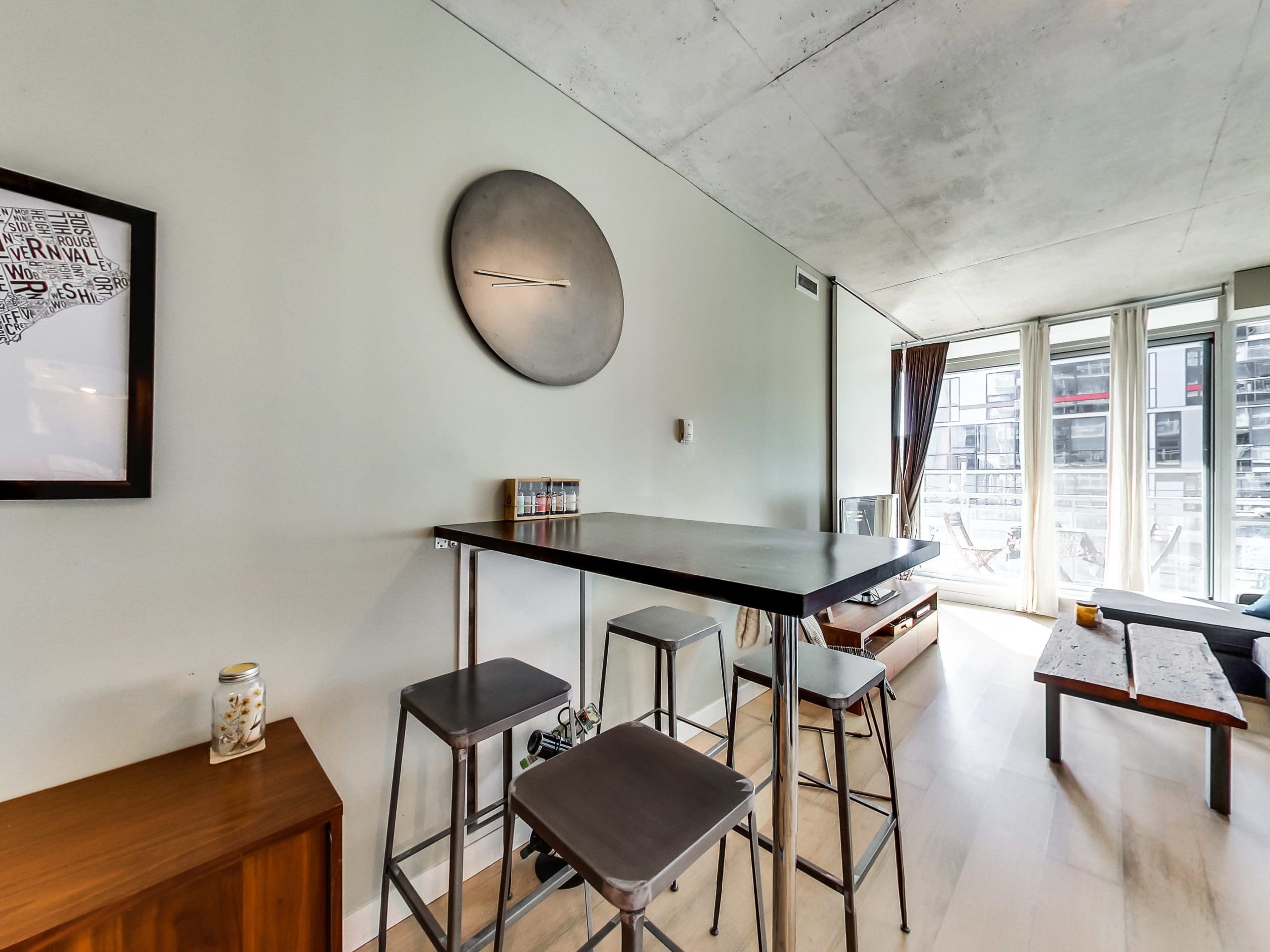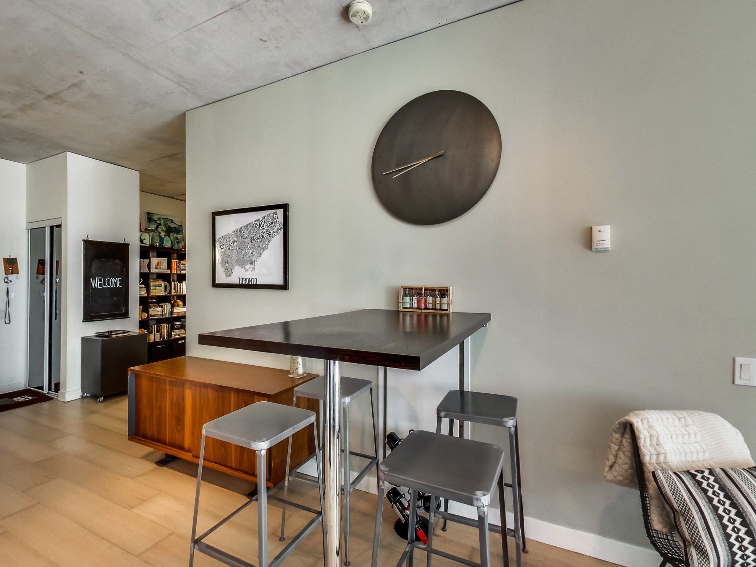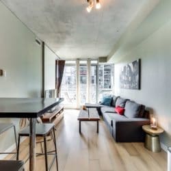 A Fantastic Location Right In The Midst Of It All In King West! This 1 Bedroom Plus Den Has A Great Layout. It’s An Incredibly Quiet, Well Constructed Building! High Exposed Concrete Ceilings And Large West Facing Balcony Make This A Bright Space! Extras: Steps To TTC, Financial District, Queen West, Victoria Memorial Park, Thompson Hotel. All Elfs, Fridge, Stove, Dishwasher, Stacked Washer/Dryer. Parking & Locker Incld. Balcony 94 Sq Ft